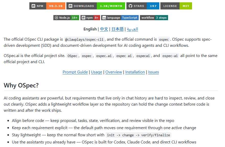 But the real problem OSpec tries to solve is bigger than code generation. It is about how a requirement moves from “we want this” to “this has been delivered,” in a way that stays clear, trackable, and easier to run together with AI.