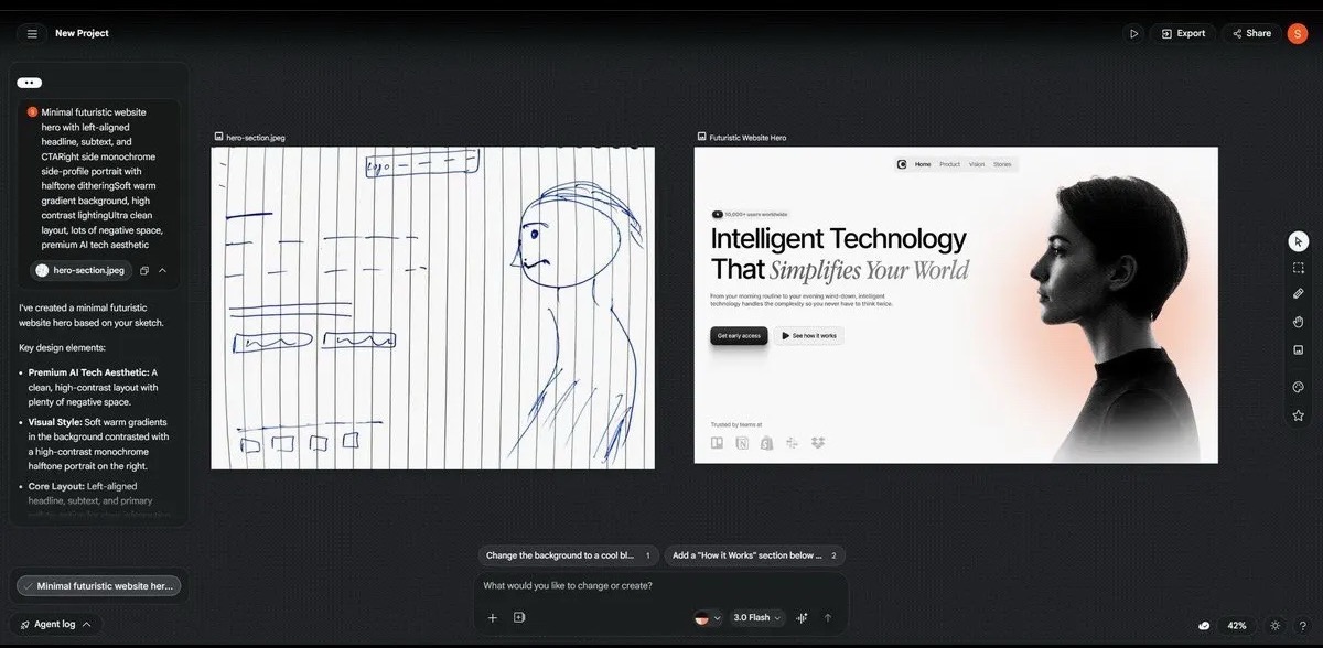 而这张图能很直观地说明,Stitch 不会停在首页首屏,它还能把页面继续延展出去。